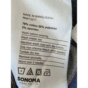 These Sonoma Boyfriend jeans are designed for women and come in a size 4. They feature a relaxed fit and are made from a blend of cotton, polyester, and spandex, offering a comfortable stretch. The jeans are in a dark blue wash and include a classic five-pocket design with a button closure. Manufactured in Bangladesh, they are machine washable for easy care. The jeans are pre-owned but remain in excellent condition with no flaws.