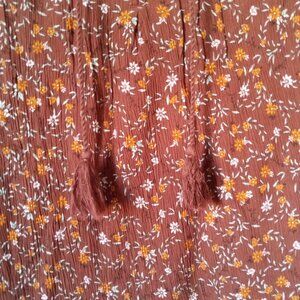 Sonoma brand. Brown seasonal fall brown short sleeve blouse with V neckline. Tassel strings are still intact and in perfect condition. No stains nor holes. No fading. Excellent condition. Size small.