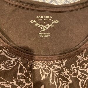 Sonoma Brown Floral Short Sleeve T-Shirt – Size Small | 100% Cotton