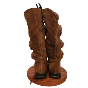 Sonoma Brown Suede Tall booths with Ties Faux Fur Size 6 Boho