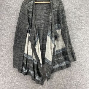 Sonoma Cardigan Women XL Gray Striped Open Front Long Sleeve Knit Acrylic Casual