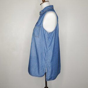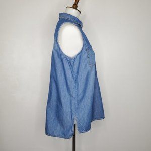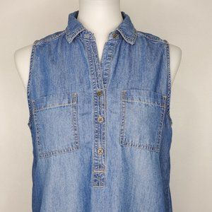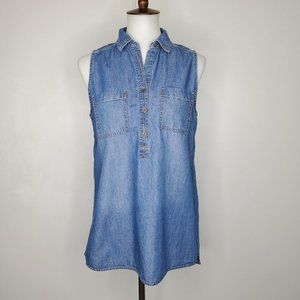 Sonoma Chambray Sleeveless Partial Button Front Pullover Top Blouse Size S