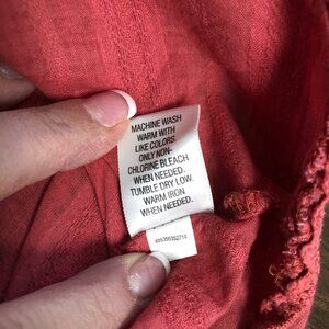 Sonoma Coral Cotton Blouse Womens Size Medium Button Front V-Neck Boho Top