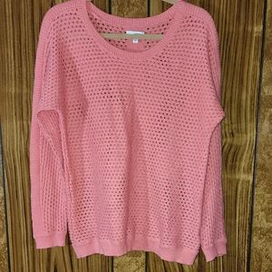 Sonoma Coral Crew Neck Sweater with Open-Knit Texture