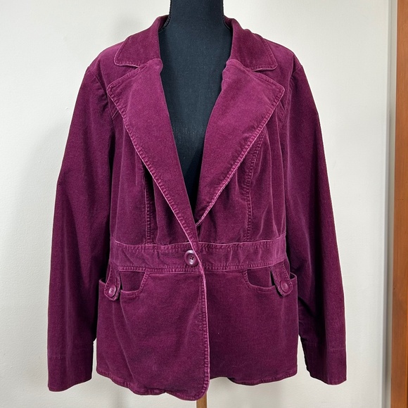 Sonoma Corduroy Fitted Violet Purple Burgundy Blazer Jacket Size 1X