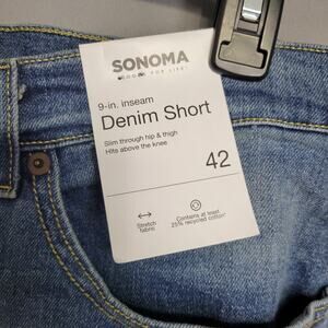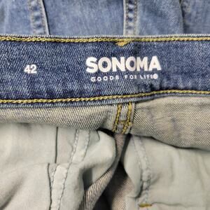 Sonoma Denim Shorts Men's 42 Blue Distressed Frayed Hem 9 Inch Inseam Stretch