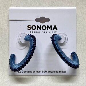 Khol's, Sonoma handmade beaded hoop post back earrings in a steel blue color. These elegant and stylish earrings are perfect for various occasions such as weddings, anniversaries, birthdays, and Valentine's Day, etc.