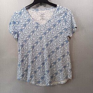 Sonoma Everyday Tee Womens Large Blue White Abstract Print V-Neck Shirt Top