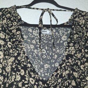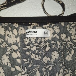 Sonoma Floral Maxi Dress MATERNITY Large Black with Tan Flowers. Elegant floral maxi dress featuring a black and cream design. Perfect for any occasion with its stylish and comfortable fit.