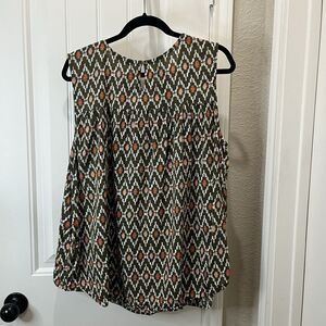 Sonoma Geometric Green Sleeveless Boho Top Keyhole Back Womens Size 2X