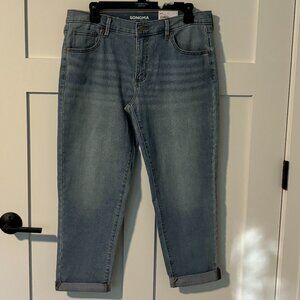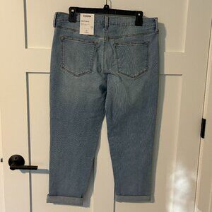 Sorry for the poor lighting. They really are a light wash. NWT. 78% cotton 20% polyester 2% spandex