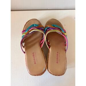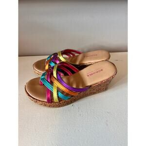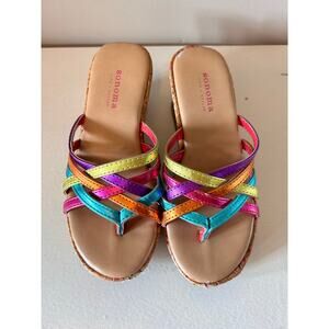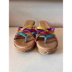 Sonoma Girls Strappy Cork Wedge Sandals Shoes Rainbow Colorful Multicolor SZ 13