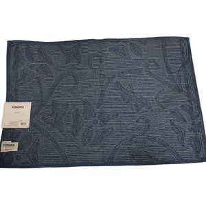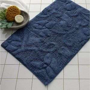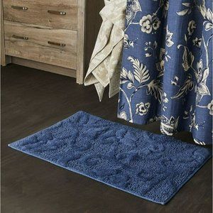 Sonoma Goods For Life Quinn Collection Bath Rug Navy Blue Paisley Inlay Pattern