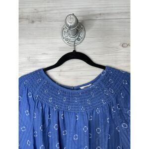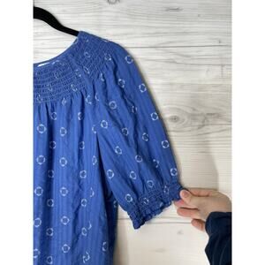 Sonoma Goods For Life Shirt Womens Large Blue Smocked Peasant Embroidered Boho