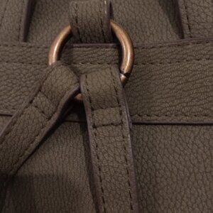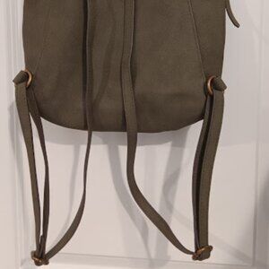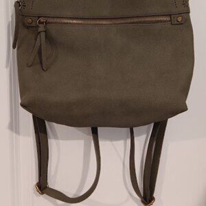 The Sonoma Goods For Life Backpack Purse Bag in olive green is a stylish and functional accessory perfect for festivals, travel, or everyday use. This boho-inspired bag features a solid pattern with cut-out detail accents, a zip closure, and gold hardware. The medium size bag has multiple pockets for organization and a comfortable green handle/strap for easy carrying. Made by the brand Sonoma Goods for Life, this backpack purse is a trendy addition to any woman's wardrobe.
