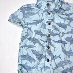 Sonoma Goods for Life light blue short sleeve button down shirt with dark blue lined shark print. Size 5. In great condition!