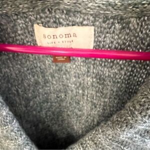 Cozy and stylish gray sweater perfect for any occasion. Soft fabric ensures comfort and warmth. This sweater is from Sonoma. This item is made out of 100% acrylic. The size is large. The measurements are 26” L x 22” W (pit to pit) x 28” sleeve (collar to cuff). This sweater has been gently worn but is in very good condition.