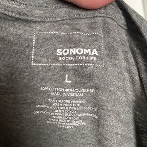 Sonoma Heather Gray Sleeveless Shirt Tank Top with Blue Palm Trees and yellow, raspberry, green, orange and purple color stripes. Sz L. Like New.