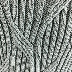 Sonoma blue, cable knit sweater - crewneck. Cotton/nylon/rayon blend - has stretch.