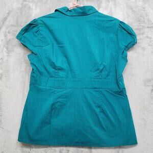 Sonoma Life + Style Cap Sleeve Button Front Blouse Size L Teal Green Blue Office Career Preppy