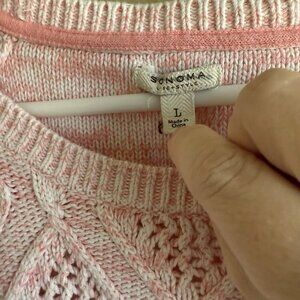 Sonoma Life + Style Chunky Cable Knit Sweater Women’s Size Medium Pink White