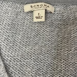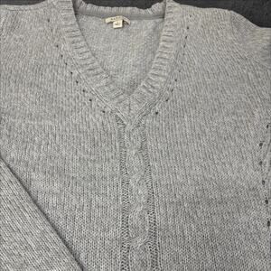 Sonoma Life + Style Grey Cable Knit Sweater Size L V-Neck Pullover Tunic Length