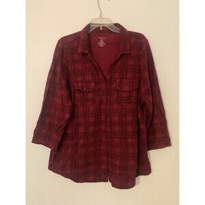 Sonoma Life + Style Red Plaid Cotton Button-up Shirt Size 1X
