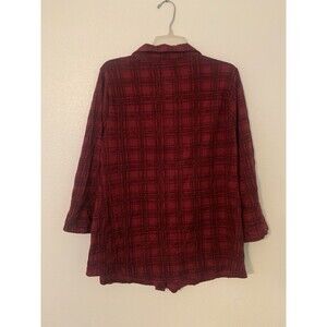 The Sonoma Life + Style Red Plaid Cotton Button-up Shirt in size 1X is a stylish and comfortable option for women looking to add a pop of color to their wardrobe. Made with soft cotton material, this shirt features a classic button-up style with a bold red plaid pattern, perfect for casual or dressy occasions. The regular size fit ensures a flattering silhouette for any woman wearing it.
