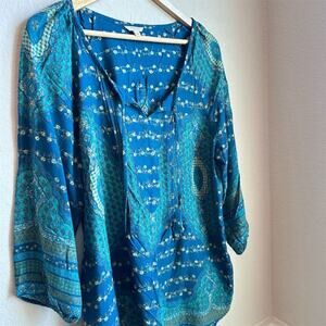 Sonoma Life + Style Women's Boho Blouse Multicolor Geometric Print Size L