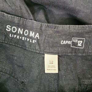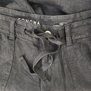 Sonoma Life Style Womens Capri Pants Size 12 Linen Rayon Blend Drawstring Black