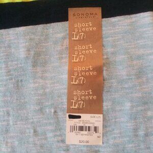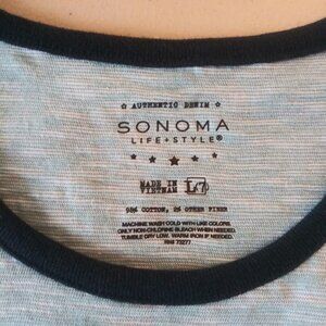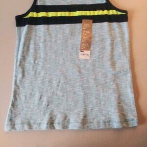 Sonoma turquoise and white marbled tank top with navy blue and yellow stripes at the chest, pull over