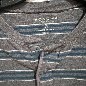 Sonoma Life+Style Men’s M Gray Striped Henley Short Sleeve Casual Shirt Tee