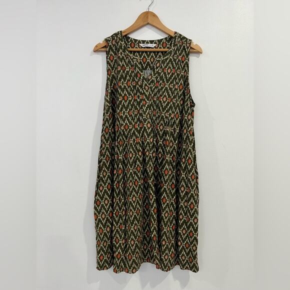 Sonoma Linen Blend Sundress Women XL Flare Green Resort Beach Vacation