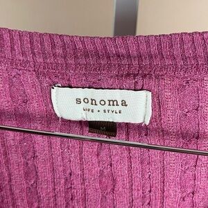 Sonoma Medium Vintage Grandma Cardigan Cotton Ribbed Cable Knit Pink Grannycore