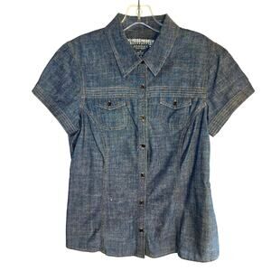 Sonoma Medium Women's Blue Denim Button Up Top Shirt Blouse Miss Size 8 10 M
