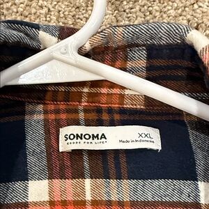 Sonoma Men's Casual Plaid Shirt - Navy and Orange