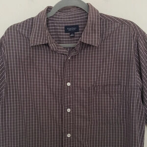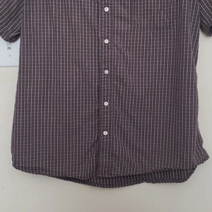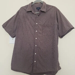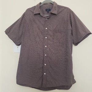 Keywords: Sonoma men’s shirt, plaid button-down, short-sleeve shirt, 100% cotton, size LT, breathable shirt, casual wear, grey-brown plaid, chest pocket, classic style, versatile, lightweight.