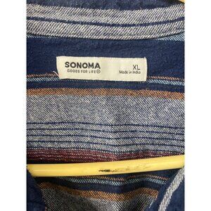 Sonoma Mens Long Sleeve Button-Down Striped Shirt XL Blue/Red Cotton Blend Casua