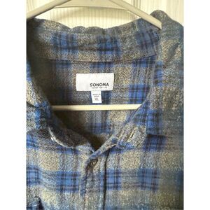 Sonoma Men's XL Blue Gray Flannel Button Down Double Breasted Outerwear