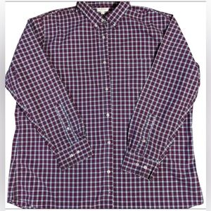 Men's button-down shirt size XXL in excellent condition. It's red, navy, and white plaid. 100% cotton. There is a single chest pocket.