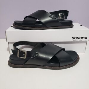 Sonoma NWT Oakley Black Faux Leather Sandals Women's Sz 10