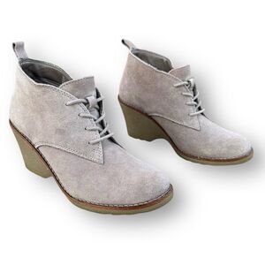 These shoes are Sonoma Nadine Ankle Boots in taupe suede with a wedge heel. They are lace-up booties and in excellent condition! Perfect for business or casual wear. 3” heel.