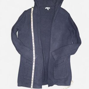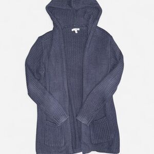 Navy blue Sonoma knit long cardigan with hood in size WOMENS MEDIUM. Great, gently used condition!