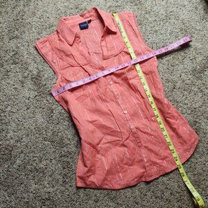 Sonoma Peach Orange Retro Pin Up Blouse. Size S Pretty pink orange peach salmon color. Gold thread details. Light weight fabric perfect for hot summer days. Lace details along the edges.