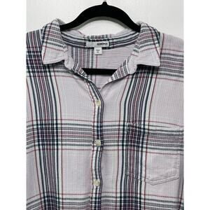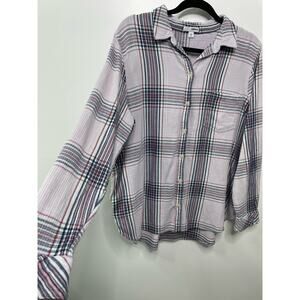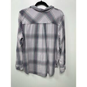 Sonoma Plaid Button-Up Shirt Long Sleeve Collared Light Purple Womens Size XL