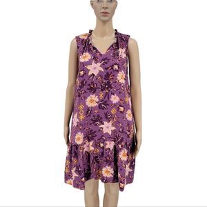 Sonoma Purple Floral Linen Blend Summer Midi Dress Women's Small
