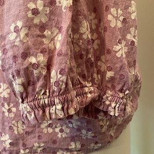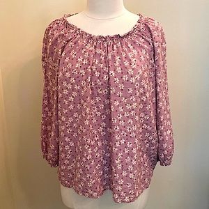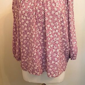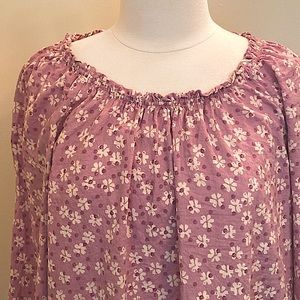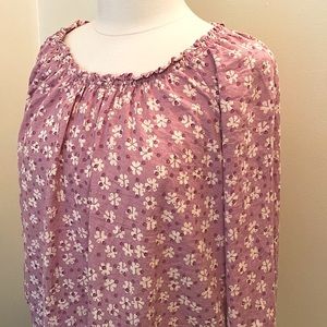 Sonoma Goods For Life Purple Floral Print Smocked Neck Long Sleeve CottageCore Top has smocked cuffs, lightweight.