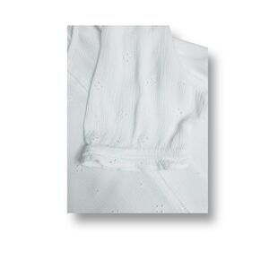 Sonoma S White Eyelet V-Neck Blouse Rayon Short Sleeve Ruffle Hem Boho Top