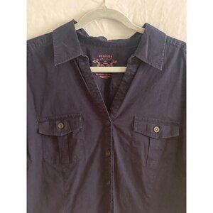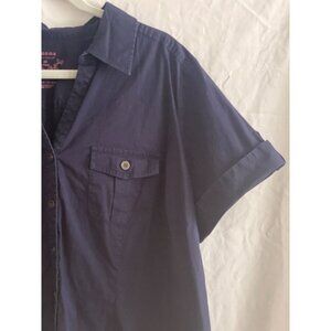 Sonoma SS Top Navy Blue Button Front Blouse Front Chest Pockets Woman 2X
