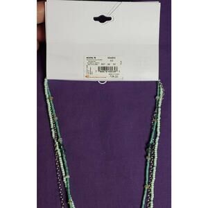 Sonoma Semiprecious Three Layer Green Seed Bead Necklace, Silver Tone, NWT